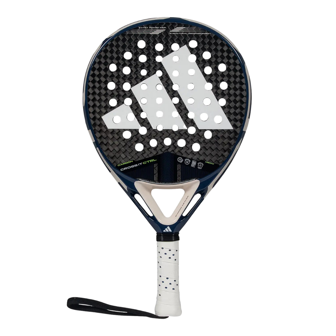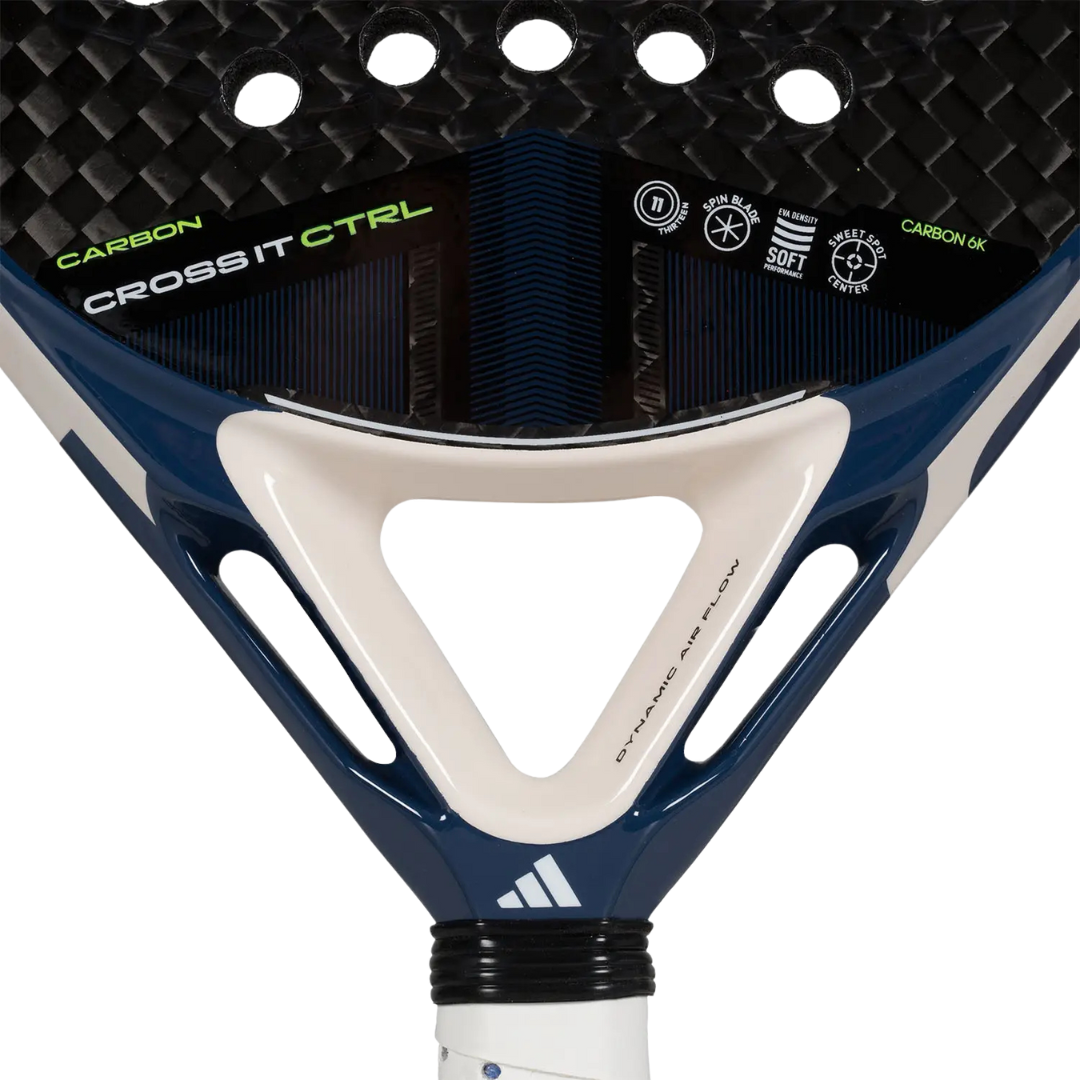 The Adidas Cross IT Carbon CTRL 2025 features a rounded shape combined with 6K carbon and EVA Soft Performance foam, delivering outstanding control, power, and comfort for advanced players. Engineered for those who demand precision and mastery in every shot. It incorporates the most advanced technologies: Dynamic Air Flow with open core holes to reduce air resistance and enhance maneuverability; Power Extra Grip with an extended grip length to boost shot inertia and power; 11 Thirteen, a specific hole configuration that optimizes stiffness, power, and durability; and Spin Blade Decal to improve control and spin.