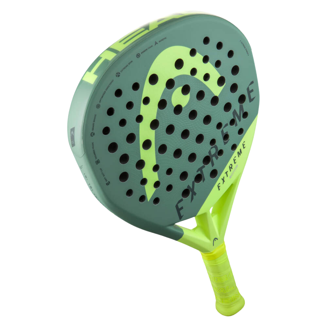 Head Extreme Motion 2024, a cutting-edge, diamond-shaped padel racket. Designed for advanced padel players, this racket offers the perfect balance of power and agility. Experience a softer playing feel and minimized vibrations with the new Soft Butt Cap technology, while the innovative Auxetic technology delivers an unbeatable combination of power and precision. The hybrid woven surface, along with Extreme Spin technology, provides enhanced touch and power.