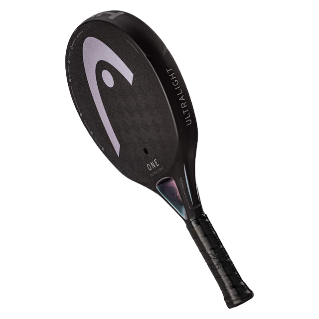 The Head ONE ultralight in white is a game changer. At only 300 grams, it's the lightest adult padel racquet available, providing a fun and easy playing experience. Featuring a round-shaped mold for a standard headsize and extended grip for comfort, its Auxetic 2.0 technology delivers enhanced feel and connection to the ball. The 12K carbon hitting surface increases ball output, while the Soft Butt Cap technology provides vibration dampening and extra comfort. With Spin Surface technology and Comfort Foam enhancing ball grip and sweetpot, this racquet is a must-have for any player looking for improved spin and control.
