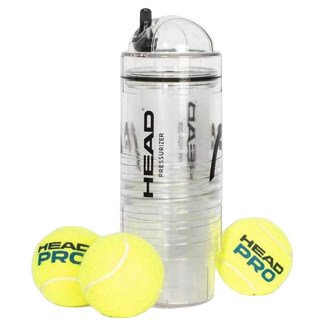 The Head x3 Pump Pressurizer - 3 Balls - is the perfect solution for maintaining optimal pressure and condition of your padel balls between matches. With its compact, lightweight design and no need for pumps, it's the most efficient and cost-effective option on the market. Keep your balls in top shape with this modern and easy-to-use pressurizer.