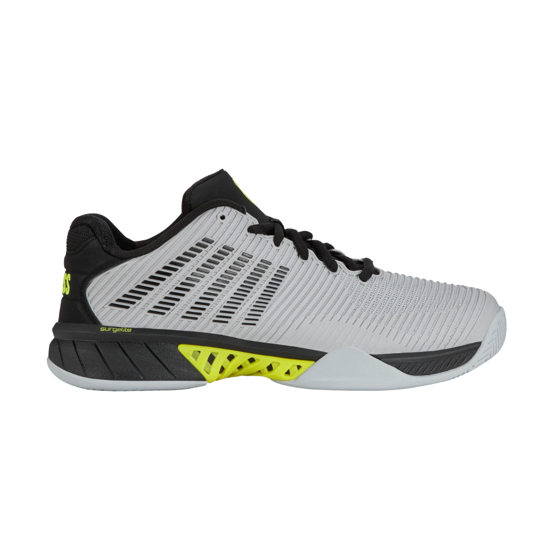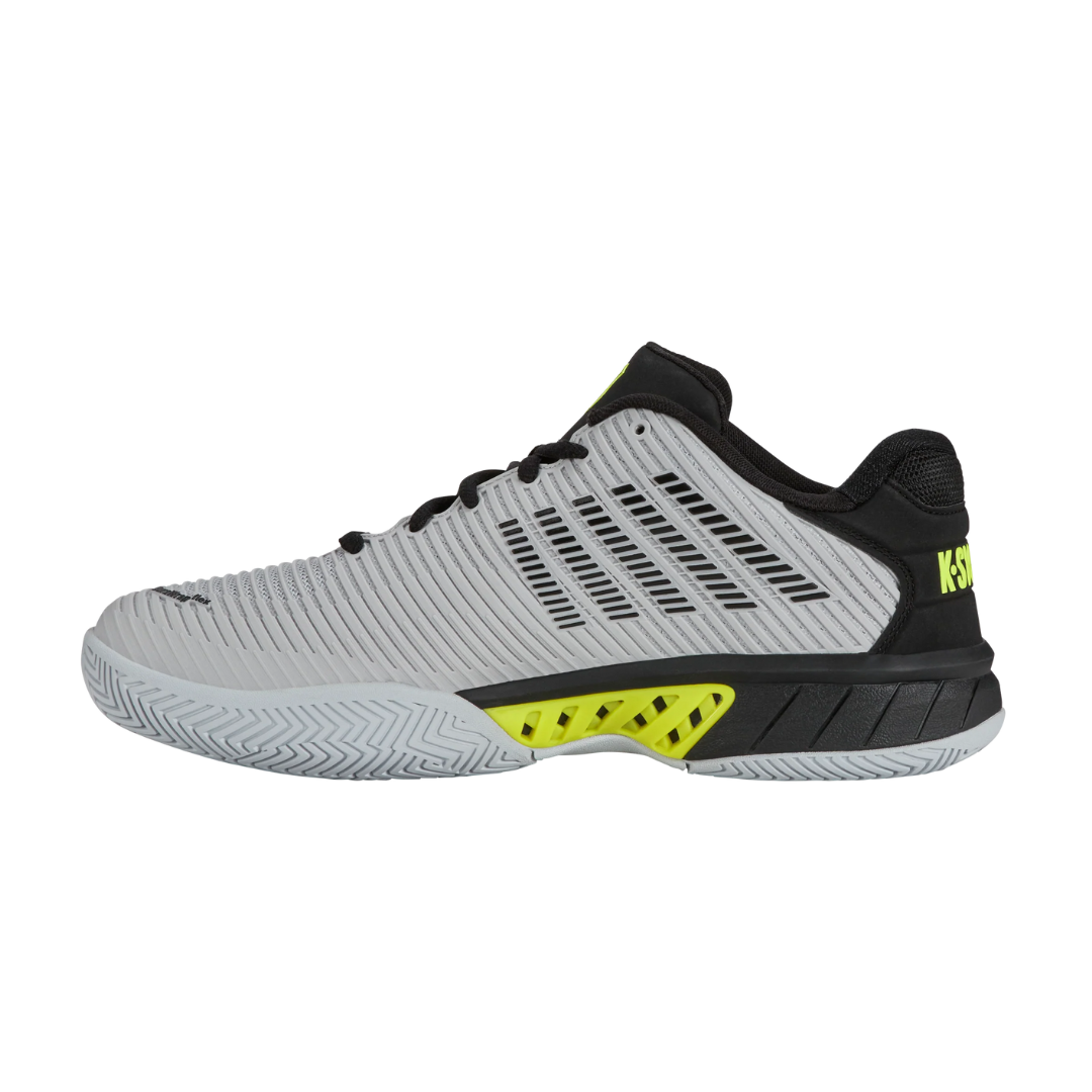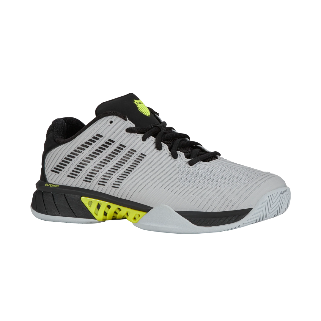 The Kswiss Hypercourt Express HB, an iteration of K-Swiss' best-selling shoe, offers a light, comfortable, and breathable experience. With a generous fit, this shoe is suitable for various playing styles and levels, making it the optimal choice for any athlete.