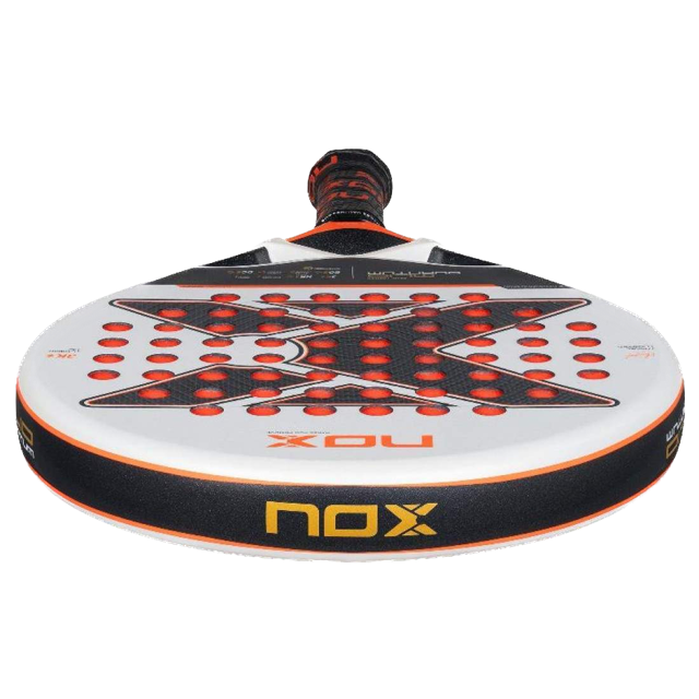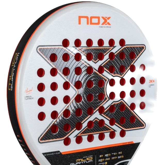 The 2025 NOX collection features the Nox ML10 Quantum 3K padel racket, selected by Miguel Lamperti. As an ever-evolving racket, it remains a staple for players with constant improvements, including the HR3 rubber, which consistently delivers excellent results. This new version introduces the innovative Photochromic Paint technology, which varies its color depending on the light. This technology creates a dynamic and attractive visual effect that will not go unnoticed on the court. It features other advanced technologies, including DCS to reduce the difference in hardness between frame and faces, EOS Flap to improve aerodynamics and manageability through lateral perforations, and Pulse System to reduce vibrations through lateral rubbers for increased stiffness and control in every stroke.