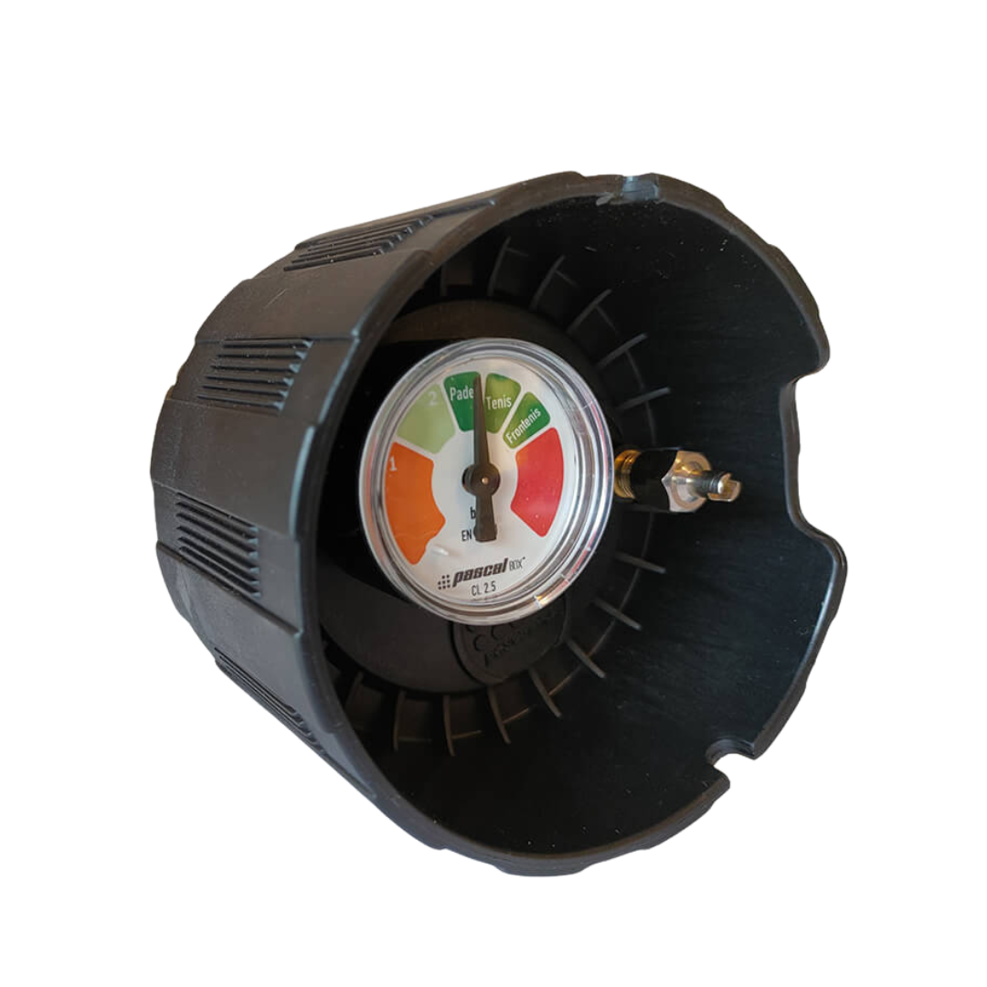 The Pascal Box 3B Pressurizer guarantees your padel balls' longevity by maintaining steady pressure for optimal performance at all times. It can hold up to 3 balls and features a precision pressure gauge calibrated to meet the official standards of the International Padel and Tennis Federations. Its new and improved sealing o-ring, high resistance fiberglass lid, and polycarbonate container make it durable and easy to use. The package includes the Pascal Box 3B, an inflation pump, and instructions for use and maintenance.