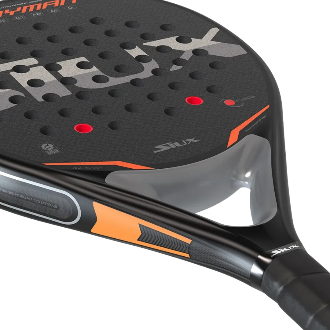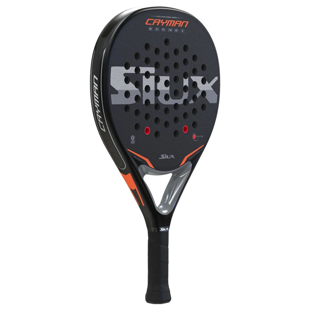 Constructed with 3K Carbon, this racket delivers a solid, responsive impact that amplifies your shots while keeping precision intact. The medium-firm EVA core launches the ball with authority and absorbs punishment, giving you the firm touch and lightning-fast feedback that separates champions from the rest. Built for intermediate players, as the Cayman thrives in every situation - aggressive attacks, strategic volleys and defensive recoveries.